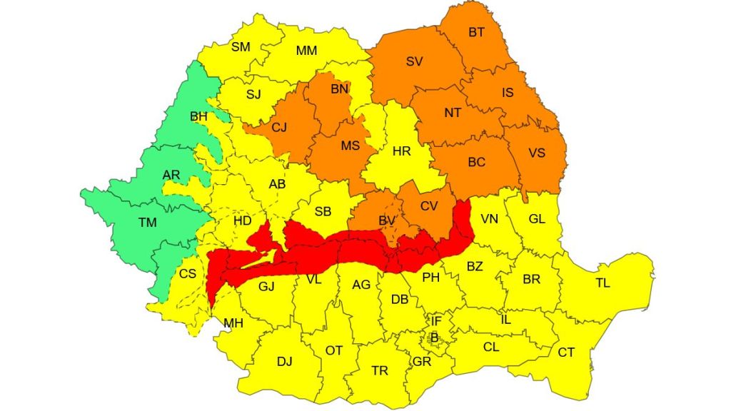Codul roșu va fi valabil în intervalul 28 decembrie, ora 10 – 29 decembrie, ora 10.