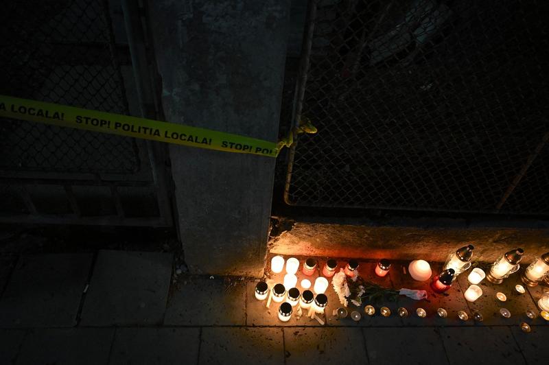 Lumânări aprins lângă internatul care s-a prăbușit în Odorheiu SecuiescFoto: Alex Nicodim / AFP / Profimedia