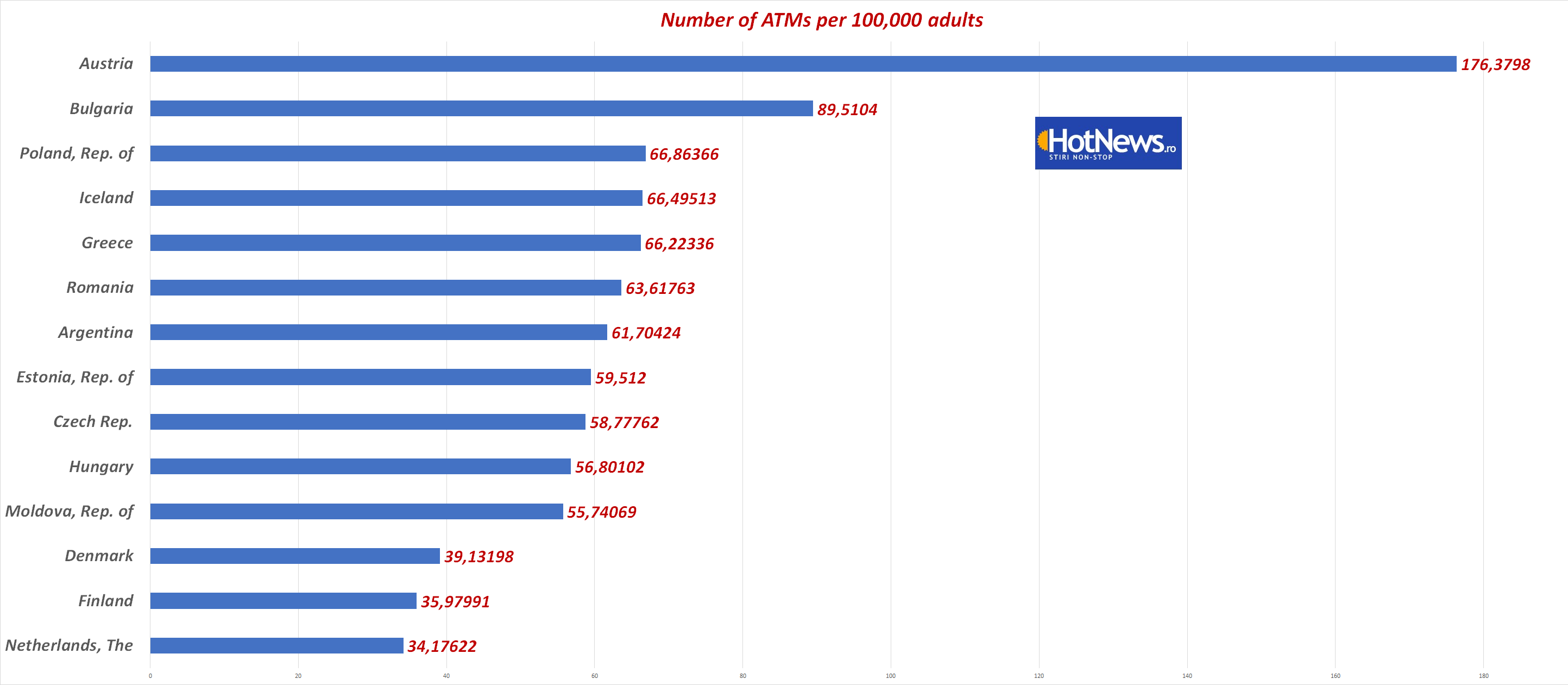 Mai jos, situația bancomatelor/suta de mii de adulți în cateva țări din lume: