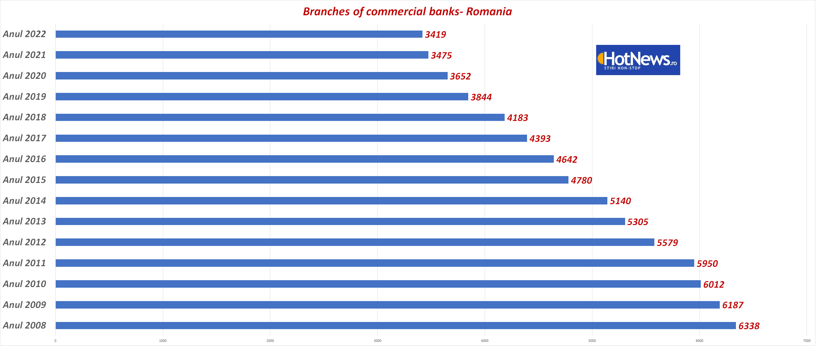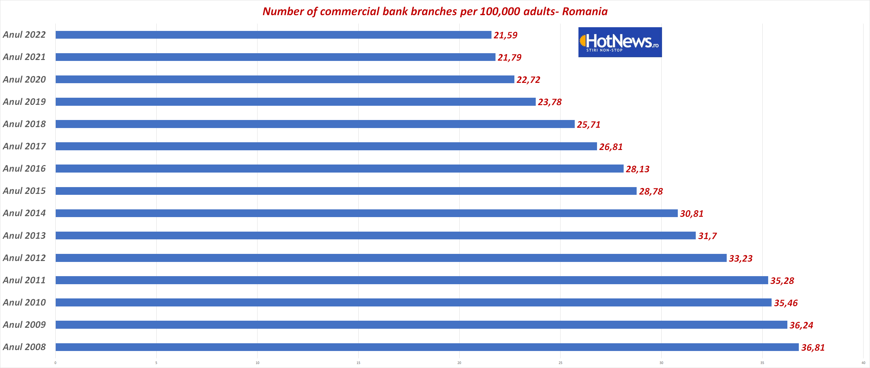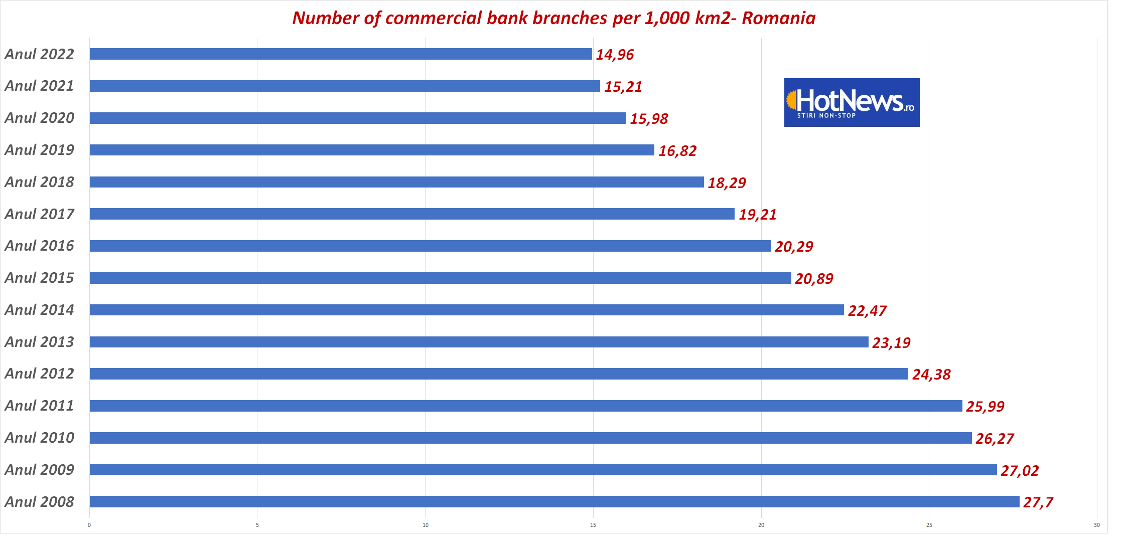Numărul de agenții bancare a scăzut în ultimii ani. Aproape că s-a înjumătățit. La orașe mai e cum e, dar în mediul rural sau pe Litoral e jale. Sunt orașe care au rămas fără unități bancare și abia cu presiuni politice s-a reușit re-deschiderea unor bănci care închiseseră ultima unitate și au plecat din cauza costurilor ridicate