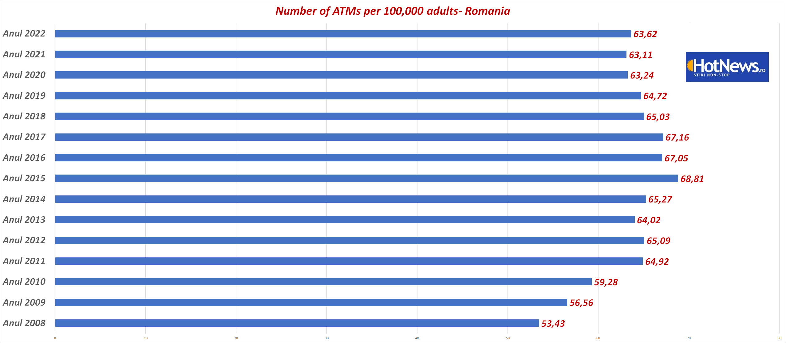 Ok, unitățile bancare s-au redus, dar nici la capitolul bancomate nu stăm strălucit: