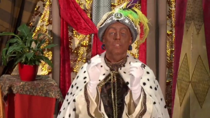 Problema este că Balthazar este interpretat de un bărbat cu pielea albă, a cărui faţă a fost vopsită în negru. În plus, acesta vorbeşte incorect şi cu un accent puternic.