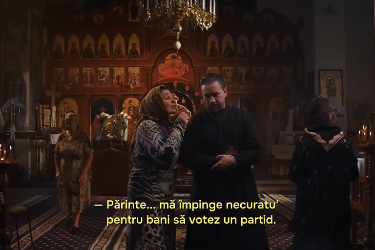 În alt video, o bătrână îi mărturisește preotului, în biserică, că „Necuratu” o împinge să voteze un partid pentru bani. Acesta îi spune să refuze pentru că „nici Iuda nu a ajuns departe după ce a luat 30 de arginți”. „O să primești o amendă de te ustură și pe lumea cealaltă”, mai spune preotul în clipul respectiv.