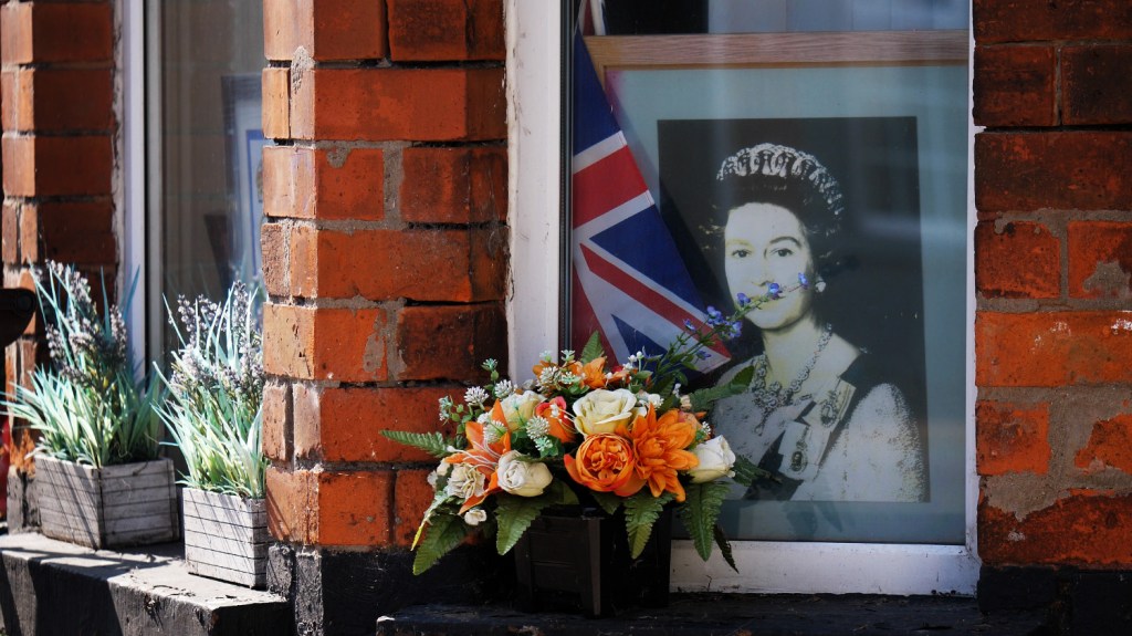 Ballymena, Irlanda de Nord. Multe dintre case au portrete cu fosta regină a Marii Britanii