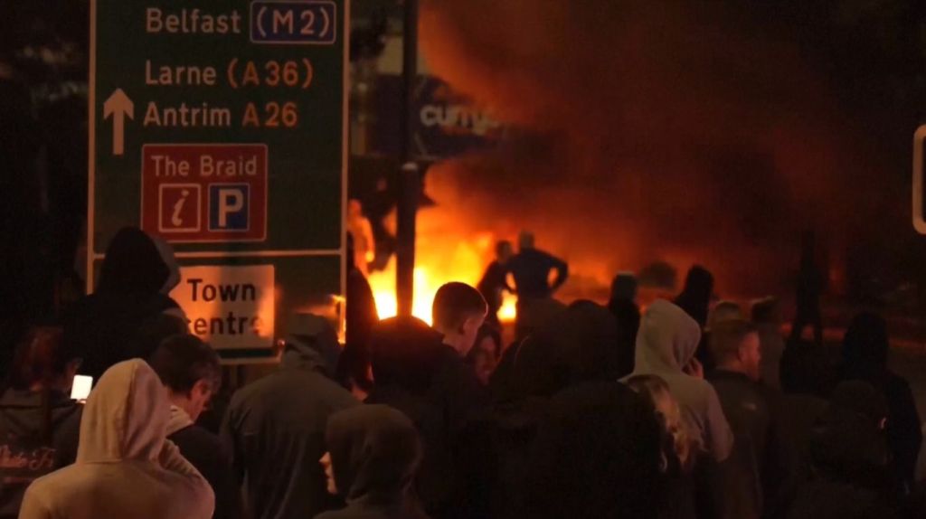 Proteste violente au izbucnit împotriva imigranților nu doar din Ballymena dar și din celelalte orășele industriale din apropierea Belfastului. Foto: Captură video / YouTube