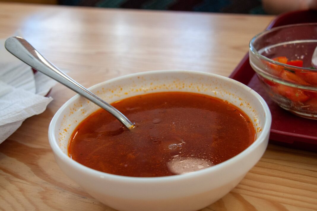 Tradiționalul borș rusesc (ciorbă). Regiunea Samara, Rusia, 8 iulie 2024.