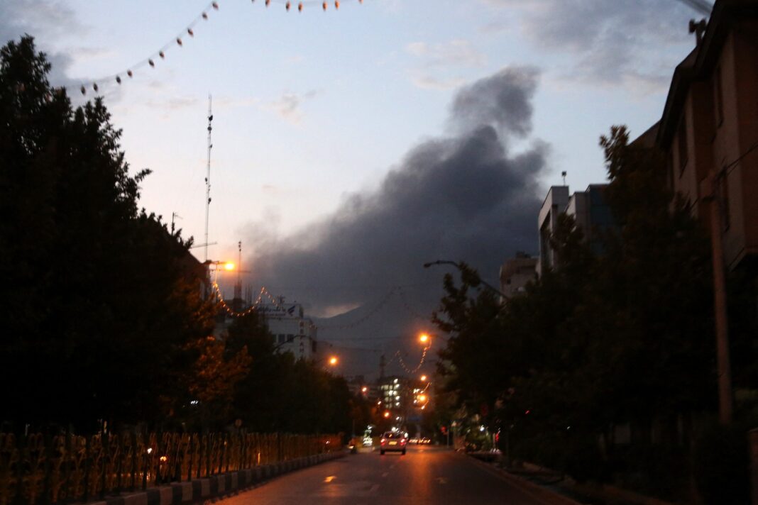 IRAN – 16 IUNIE 2025: Fum se ridică din zona în care forțele israeliene au lovit clădirea televiziunii de stat iraniene din Teheran, pe 16 iunie 2025.