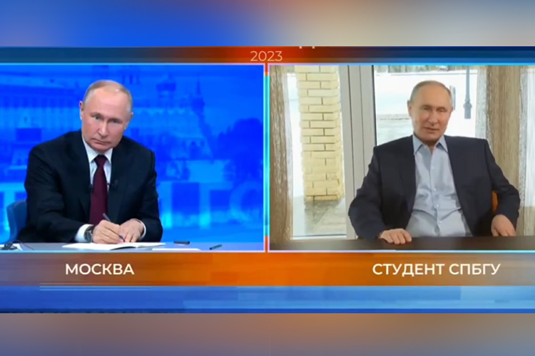 „Vladimir Vladimirovici, bună ziua, sunt student la Universitatea de Stat din Sankt Petersburg. Vreau să vă întreb, este adevărat că aveţi o mulţime de sosii?”, a întrebat dublura lui Putin, provocând râsete în rândul publicului aflat în sală cu Putin, la Moscova. „Şi de asemenea: Cum vedeţi pericolele pe care inteligenţa artificială şi reţelele neuronale le aduc în viaţa noastră?”, a continuat cel care semăna izbitor cu Putin.