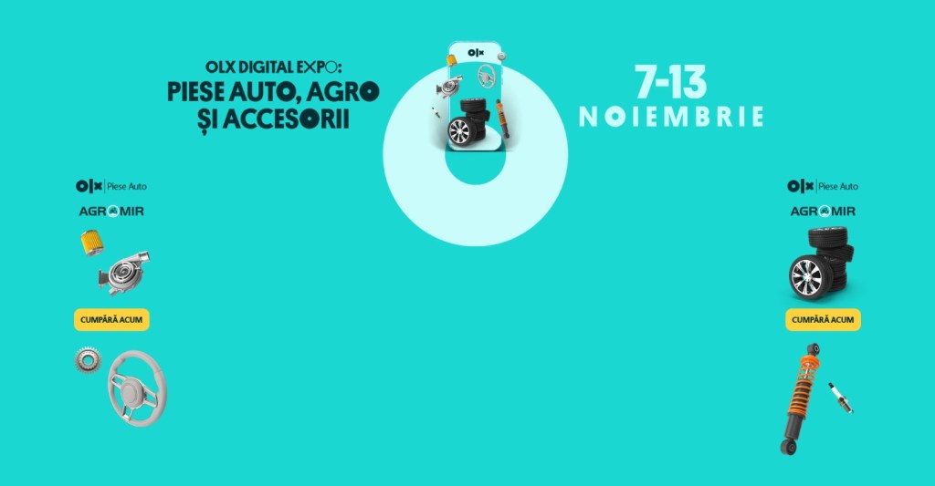 OLX a deschis pe 7 noiembrie a doua ediție a Târgului Digital de Piese Auto, Agro și Accesorii, cu reduceri vizibile direct în platformă și navigare simplificată pe categorii. Evenimentul, realizat în colaborare cu Agromir, aduce oferte valabile doar pe durata campaniei, până pe 13 noiembrie.