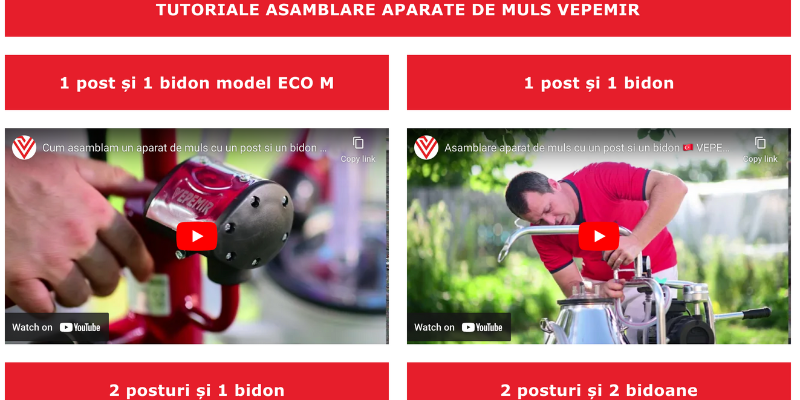 Tutoriale video pentru asamblarea unei mulgatoare