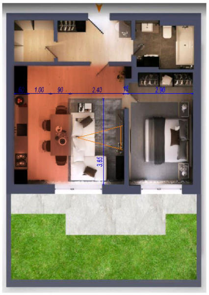 Dacă acesta era poziționat la distanța corectă s-ar fi observat că spațiul de trecere până la canapea scade la sub 60 cm (necesarul pentru trecerea unei persoane).