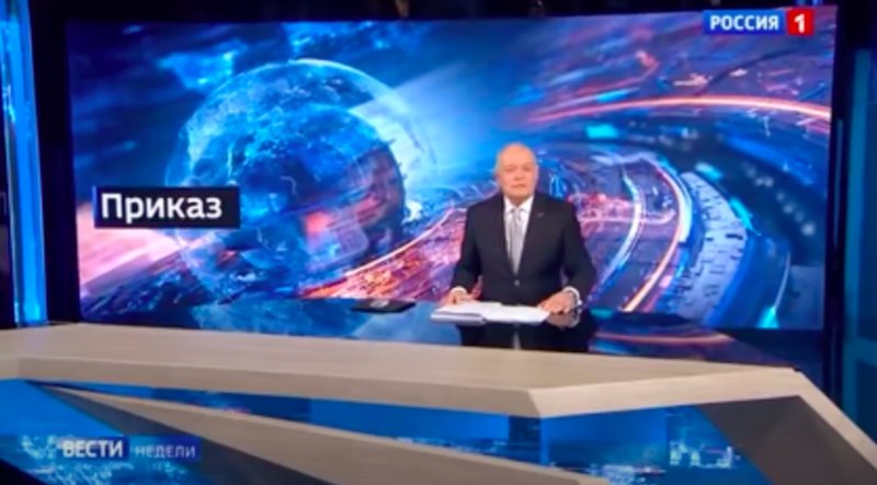 Prezentarea potenţialului nuclear al Federației Ruse şi amenințările directe la adresa SUA și NATO, în loc de editorial al unui program informativ. Așa a arătat principalul buletin săptămânal al postului de televiziune “Rossia 1”, retransmis inclusiv în Republica Moldova, şi prezentat de unul dintre cei mai cunoscuţi jurnalişti din Rusia, Dmitri Kiseliov, supranumitul “cel mai toxic propagandist al Kremlinului”.