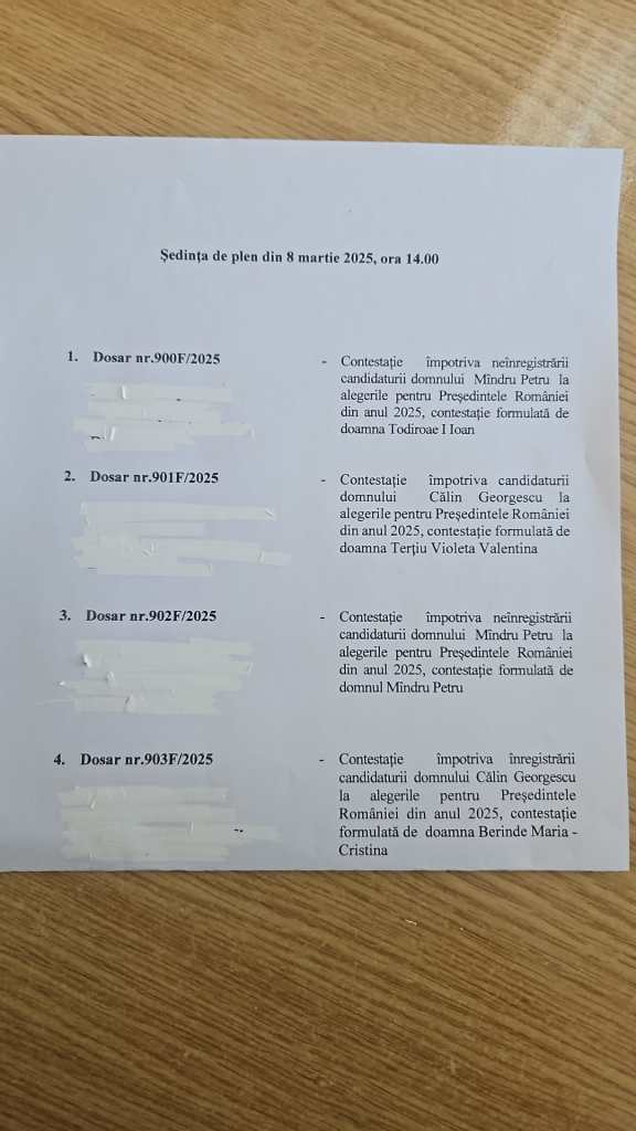 Pe ordinea de zi se află două contestații față de înregistrarea candidaturii lui Călin Georgescu la alegerile prezidențiale. Acestea sunt depuse de Violeta Valentina Terțiu și Maria Berinde.