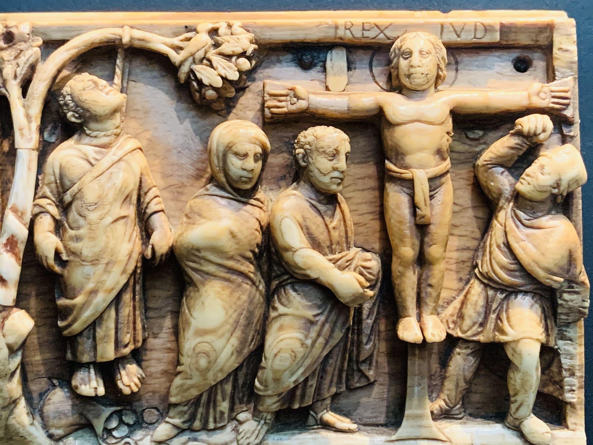 Una dintre cele mai timpurii reprezentări ale răstignirii lui Iisus datează de la începutul secolului V, la peste 400 de ani după moartea sa. El este înfățișat pe o gravură în fildeș despre care se crede că a format latura unei casete sau a unui relicvariu.
