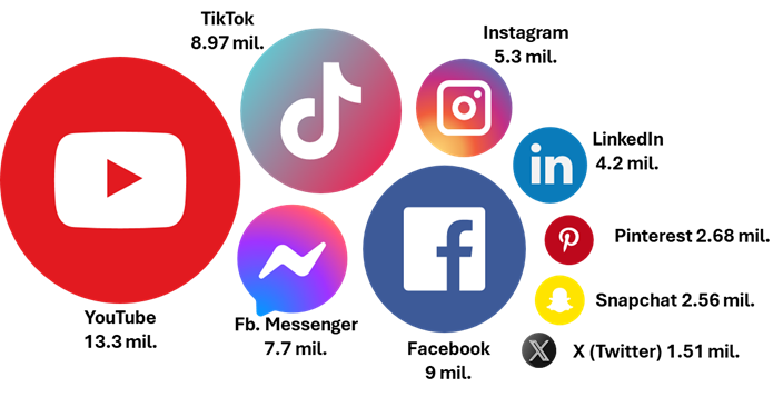 Deci, avem o populație lipsită de cunoștințe avansate, dar cu acces la infrastructură de comunicații și cu un apetit ridicat pentru social media. Site-ul datareportal.com menționează 13.3 milioane de utilizatori de social media in România, distribuiți astfel: 13.3 mil Youtube, 9 mil. Facebook, 8.97 mil. TikTok, 5.3 mil. Instagram, 7.7 mil. Facebook Messenger, 2.68 mil. Pinterest, 2.56 mil Snapchat, 4.2 mil. Linkedin, 1.51 X(Twitter).