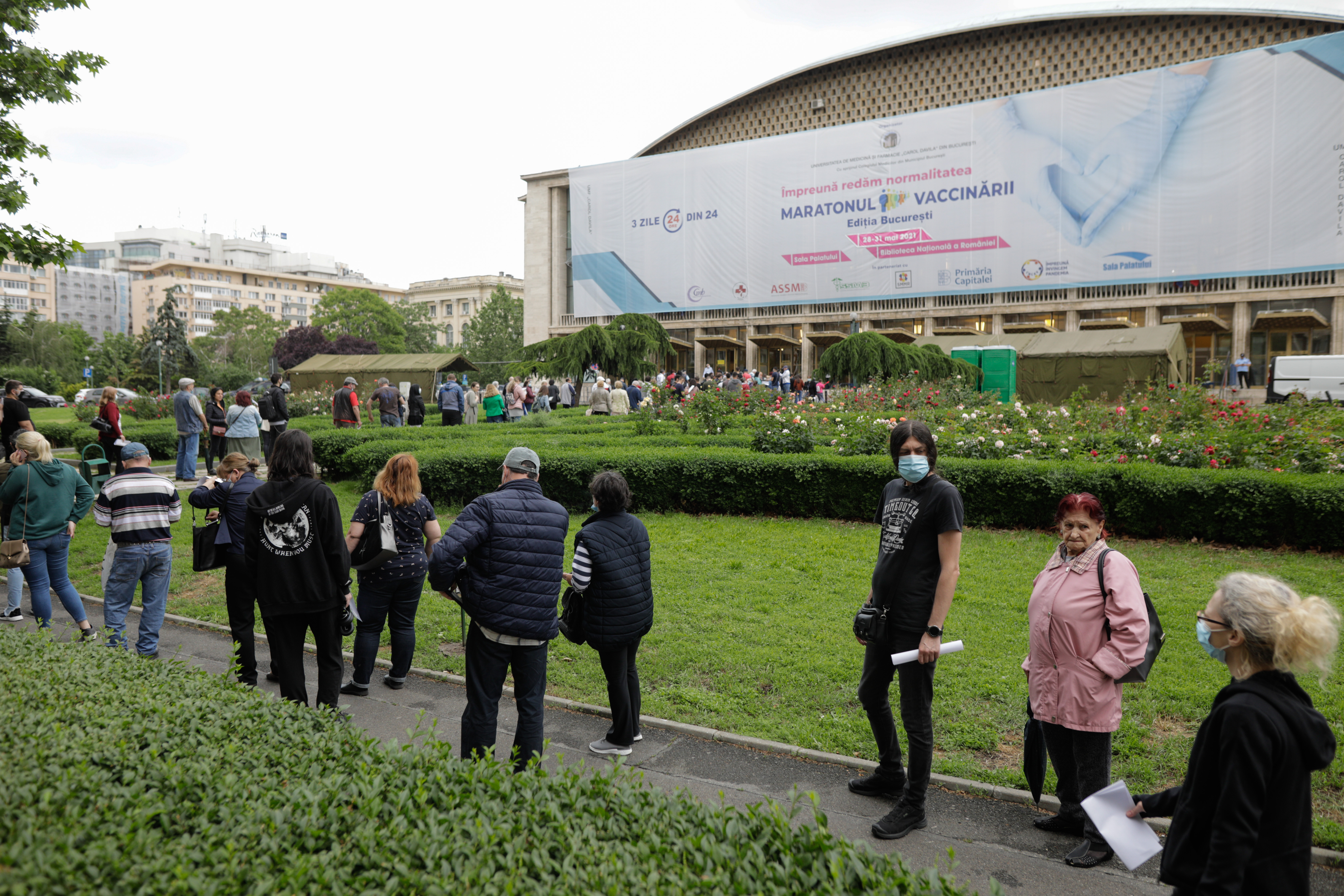 Români stând la coadă la vaccinare la Sala Palatului din București, mai 2021 / Foto: Inquam Photos / George Călin