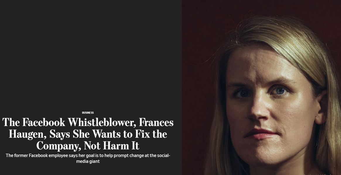 Frances Haugen, fost manager de produs, angajată pentru a ajuta la protejarea împotriva interferențelor electorale de pe Facebook, a declarat că a devenit frustrată de ceea ce a văzut în interior referitor la lipsa de deschidere a companiei cu privire la potențialul platformelor sale de a face rău și de a refuza să-și remedieze defectele.