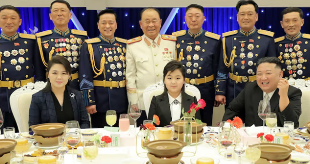 „Fiica respectată” a lui Kim între tată şi mama Ri Sol-ju, la un banchet în onoarea armatei nord-coreene