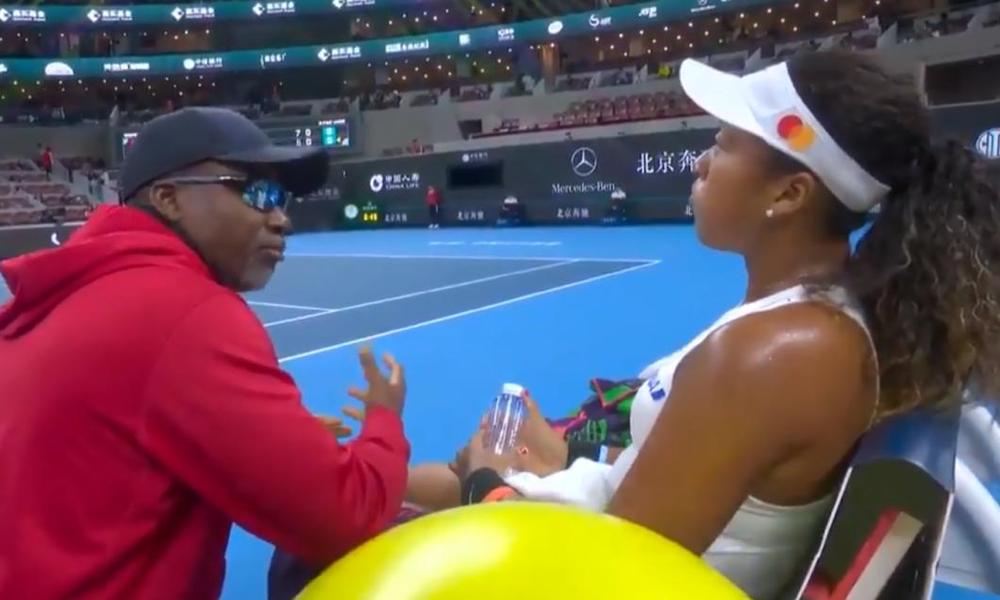 Naomi Osaka (21 de ani) a pierdut primul set al partidei cu Bianca Andrescu (19 ani), 7-5, din sferturile turneului de la Beijing. După discursul tatălui său, Osaka a revenit în joc și a câștigat al doilea set cu 6-3.