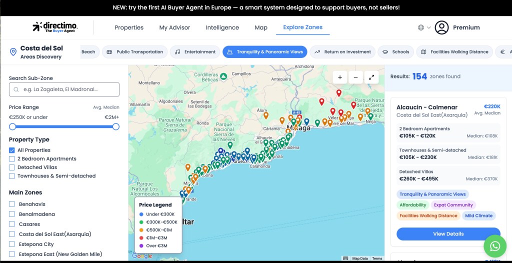 Pe 21 iulie, Directimo va lansa un nou instrument de analiză și filtrare a zonelor, conceput să ajute cumpărătorii să navigheze prin cele 154 de zone din Costa de Sol, intinse pe o arie de peste 200 km2.