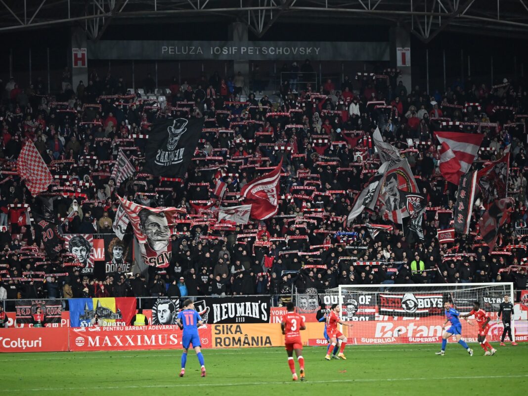Peluza Iosif Petschovsky la meciul de fotbal dintre UTA Arad și FCSB, desfasurat pe Stadionul Francisc Neuman din Arad, pe 26 ianuarie 2025.