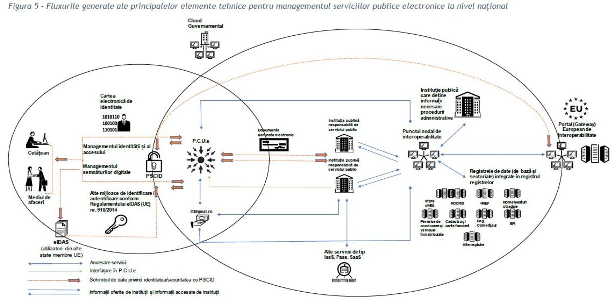Dezvoltarea serviciilor de e-guvernare din România a fost afectată de absența unei scheme arhitecturale clare de administrare la nivel național a serviciilor publice electronice, precum și de lipsa unei soluții arhitecturale de interoperabilitate obligatorie pentru toate serviciile publice electronice. În contextul analizei facilităților tehnice cheie care să susțină serviciile publice electronice se remarcă și lipsa unei strategii de dezvoltare a serviciilor de Cloud Guvernamental și de migrare a sistemelor informatice în cloud.