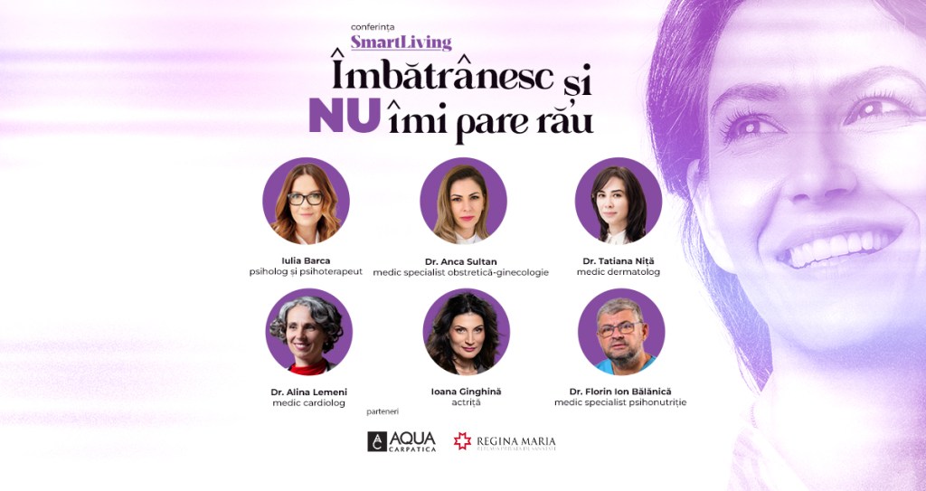Conferința „Îmbătrânesc și nu îmi pare rău”, organizată de publicația SmartLiving, este un spațiu de răspunsuri și de inspirație. Aici vei găsi informații medicale clare și utile, dar și povești de la femei ca tine. Este locul unde specialiștii vor vorbi deschis despre sănătate, echilibru și prevenție și vor răspunde întrebărilor punctuale, din public, în cadrul unui Q&A lămuritor.