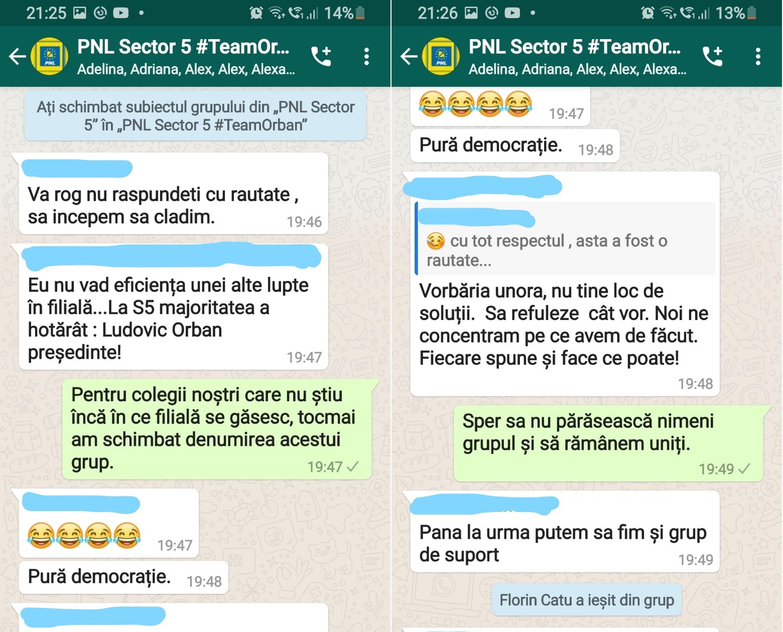 Conform unei capturi ce surprinde discuția purtată dupa anunțarea rezultatului votului, a fost schimbat inclusiv numele grupului – din „PNL Sector 5” în „PNL Sector 5 #Team Orban”.