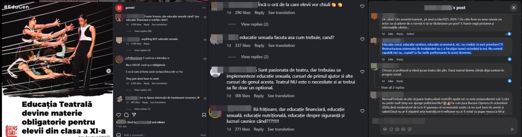 În contextul în care în spațiul public au început să apară știri despre introducerea educației teatrale ca materie obligatorie la liceu, mai mulți utilizatori de pe rețelele sociale, inclusiv tineri, au reclamat faptul că, și în acest an, lipsește educația sexuală din programa școlară.