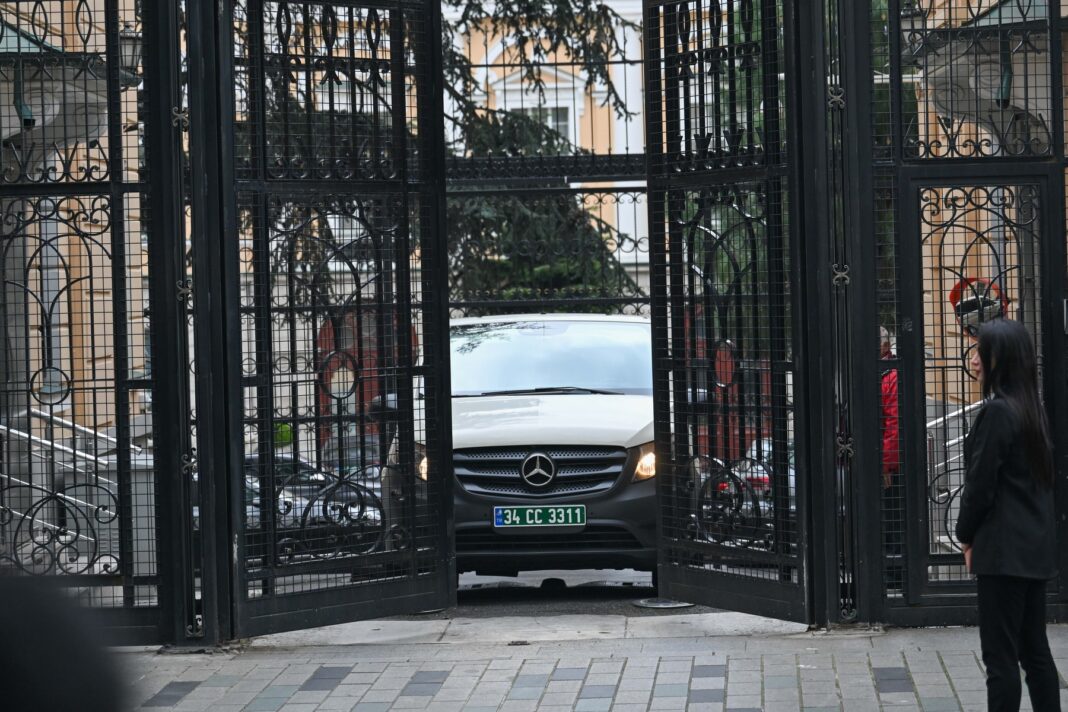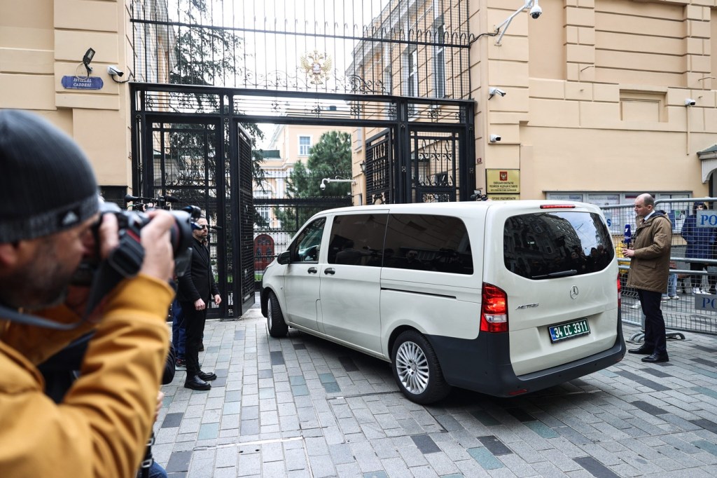 Un vehicul care îi transportă pe delegații americani părăsește consulatul rus din Istanbul, Turcia, 10 aprilie 2025.