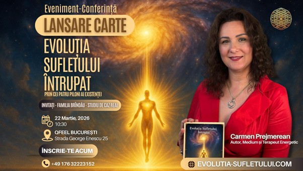 Pe 22 martie 2026, la QFeel, are loc evenimentul „Evoluția Sufletului Întrupat – Cei 4 piloni ai existenței”, o conferință experiențială care marchează lansarea cărții cu același nume, semnată de Carmen Prejmerean – autor, medium și terapeut energetic.