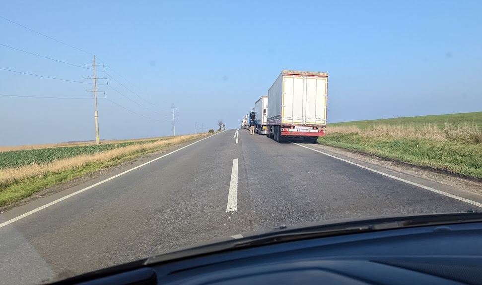 Foto: Cum arată zona din câmp, dinainte de Siret, de unde începe să se formeze coloana de TIR-uri care blochează prima bandă din DN2: