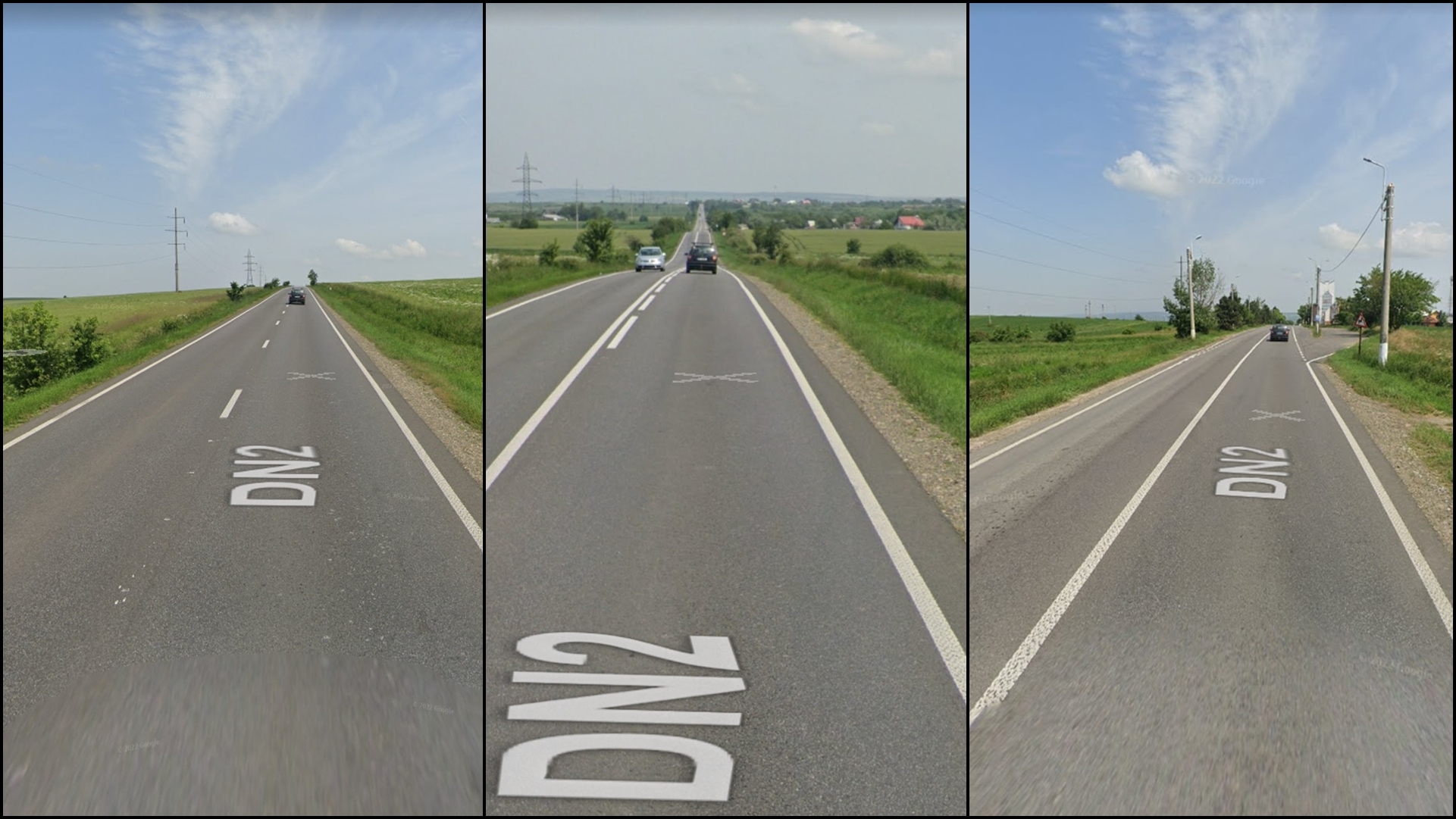 FOTO: Bucata de drum în cauză unde se fac acum cozi de TIR-uri pe DN2. Imagini surprinse de Google Street View în iunie 2021.