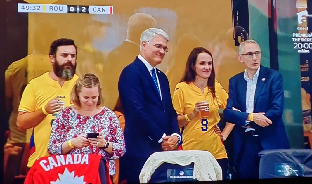 „Fotbalul ne aduce împreună! Adjunctul șefului misiunii, Alys Spensley, împreună cu ministrul afacerilor externe, Oana Țoiu, ambasadorul Mexicului în România, Amparo Anguiano și ambasadorul Canadei în România, Gavin Buchan se află în tribune, acolo unde echipa națională a României înfruntă Canada, într-un meci amical palpitant, în drumul spre Cupa Mondială FIFA 2026 – organizată în Statele Unite, Mexic și Canada”, a scris ambasada, vineri seară, într-o postare pe Facebook.