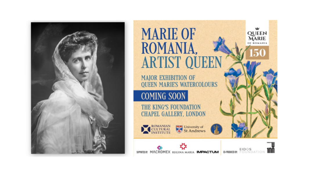 Intitulată „Marie of Romania, Artist Queen”, expoziția va fi găzduită între 18 septembrie și 12 octombrie 2025 la prestigioasa The King’s Foundation Garrison Chapel Gallery din Londra, un spațiu oferit cu generozitate de Fundația Majestații Sale Regele Charles III.