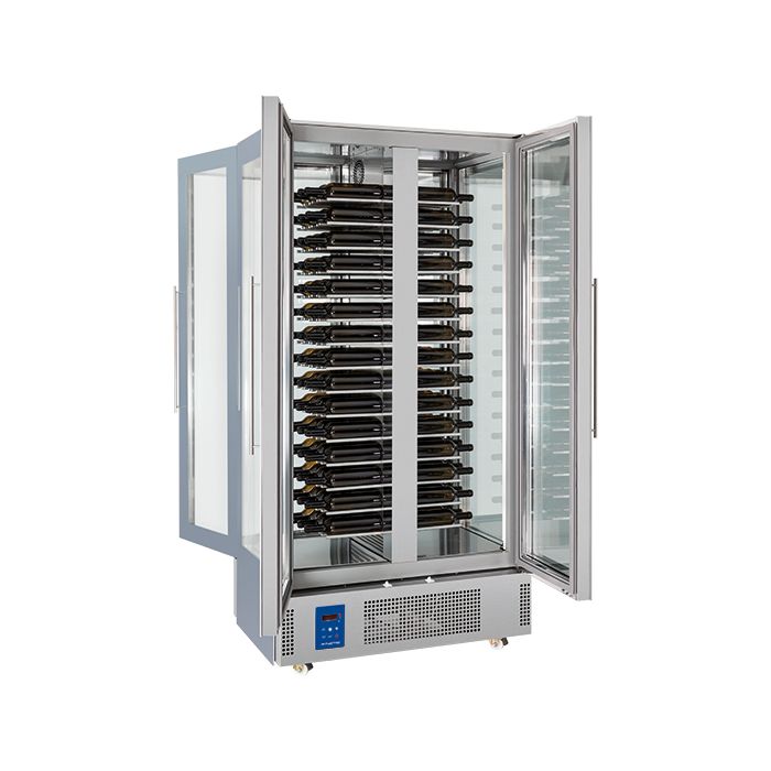 O vitrina de vinuri este un echipament deosebit de important pentru industria HoReCa, indiferent ca vorbim despre restaurante, baruri, cantine, hoteluri, supermarket-uri etc., avand un dublu rol. In primul rand, aceasta pastreaza vinurile, unele dintre cele mai sensibile bauturi din acest punct de vedere, la o temperatura ideala pentru consum imediat, motiv pentru care se mai numeste si frigider de vinuri. In al doilea rand, ea prezinta sticlele din interior intr-o maniera eleganta si eficienta, atat pentru chelneri, cat si pentru clienti, care vor fi imbiati sa comande mai mult, sporind astfel profiturile business-ului dumneavoastra.