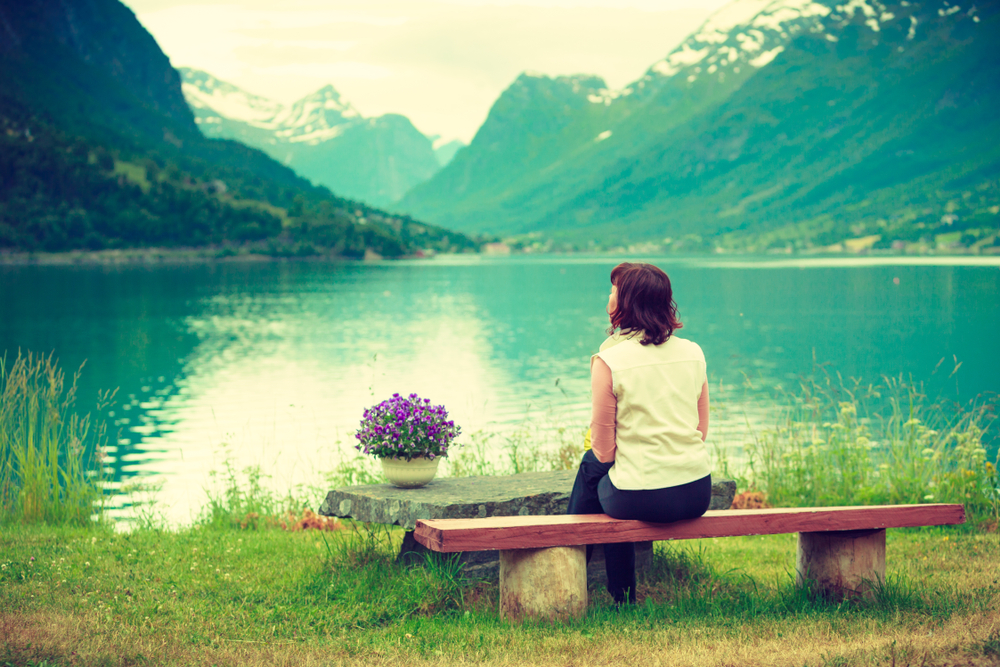 Fotografie ilustrativă – Femeie stând singură pe o bancă, pe malul mării, în Norvegia. Sursa foto: Shutterstock.com