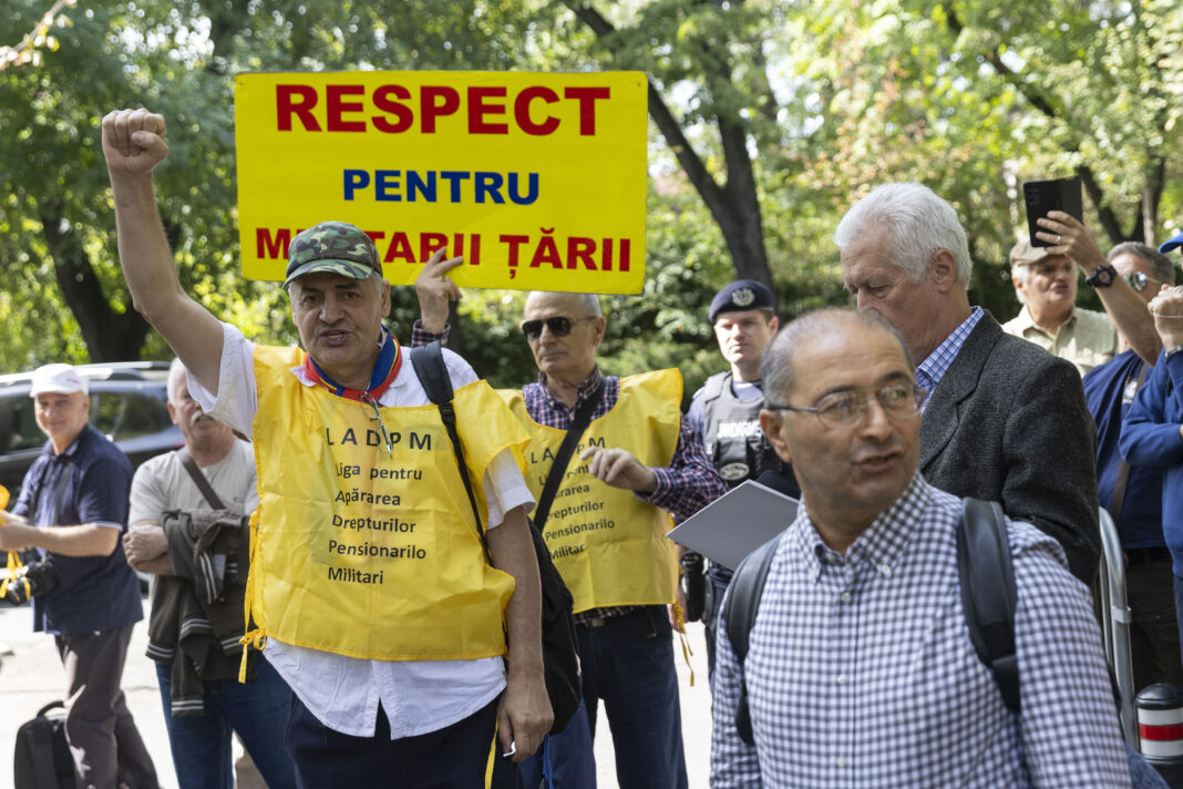Protest al Sindicatului Cadrelor Militare Disponibilizate la sediul Partidului Social Democrat Bucuresti, 17 septembrie 2024.