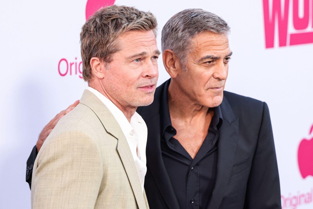Brad Pitt și George Clooney la premiera din septembrie 2024 a filmului lor „Wolfs”, FOTO: Image Press Agency / Alamy / Profimedia Images