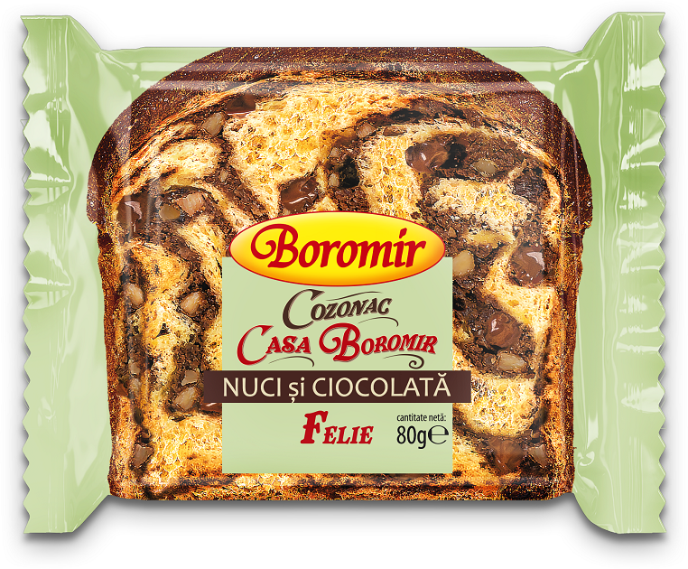 Noul nostru produs face parte din familia de Cozonaci Casa Boromir, o colecție ce reunește trei sortimente de cozonaci. Umpluturile de nucă și ciocolată, cireșe sau portocale, recreează gustul tradițional și le conferă o savoare autentică prin combinațiile deosebite de arome și texturi.