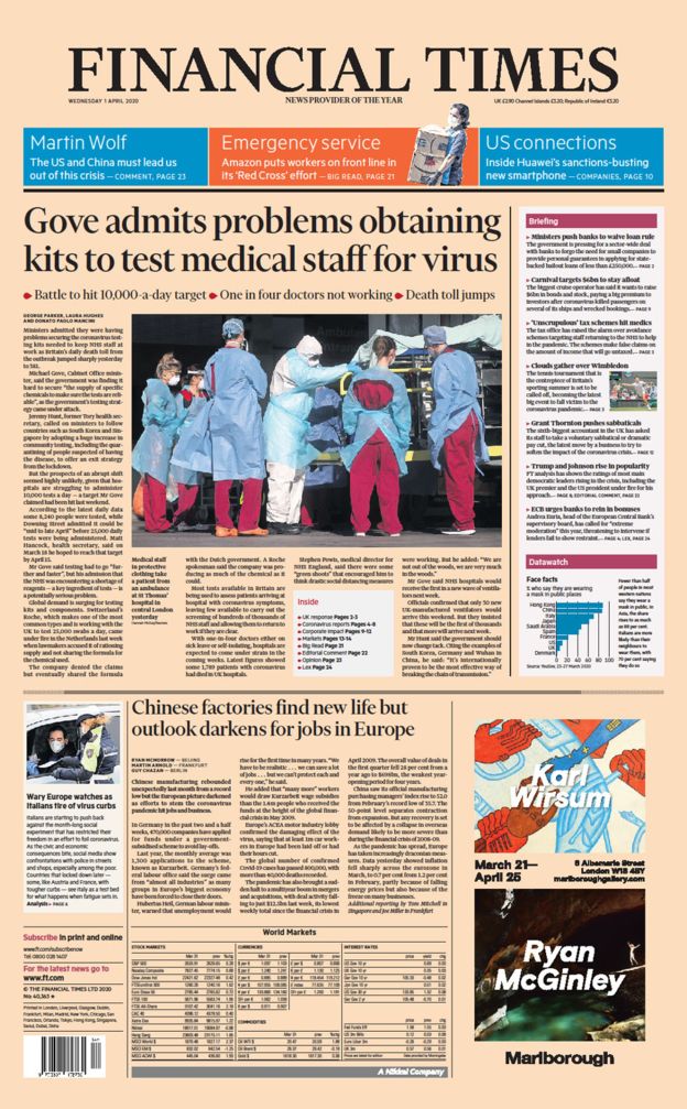 - Din Regatul Unit, Financial Times vorbește și el despre „moartea bunului simț și competenței la guverne occidentale de bază”, referindu-se în special la SUA, într-o analiză privind lumea post-Covid-19: „Orice ordine globală se bazează pe cooperarea dintre statele puternice. China și SUA nu trebuie doar să funcționeze. Ele trebuie să funcționeze împreună, admițându-și numeroasele interese pe care le au în comun și tolerându-și divergențele profunde”.