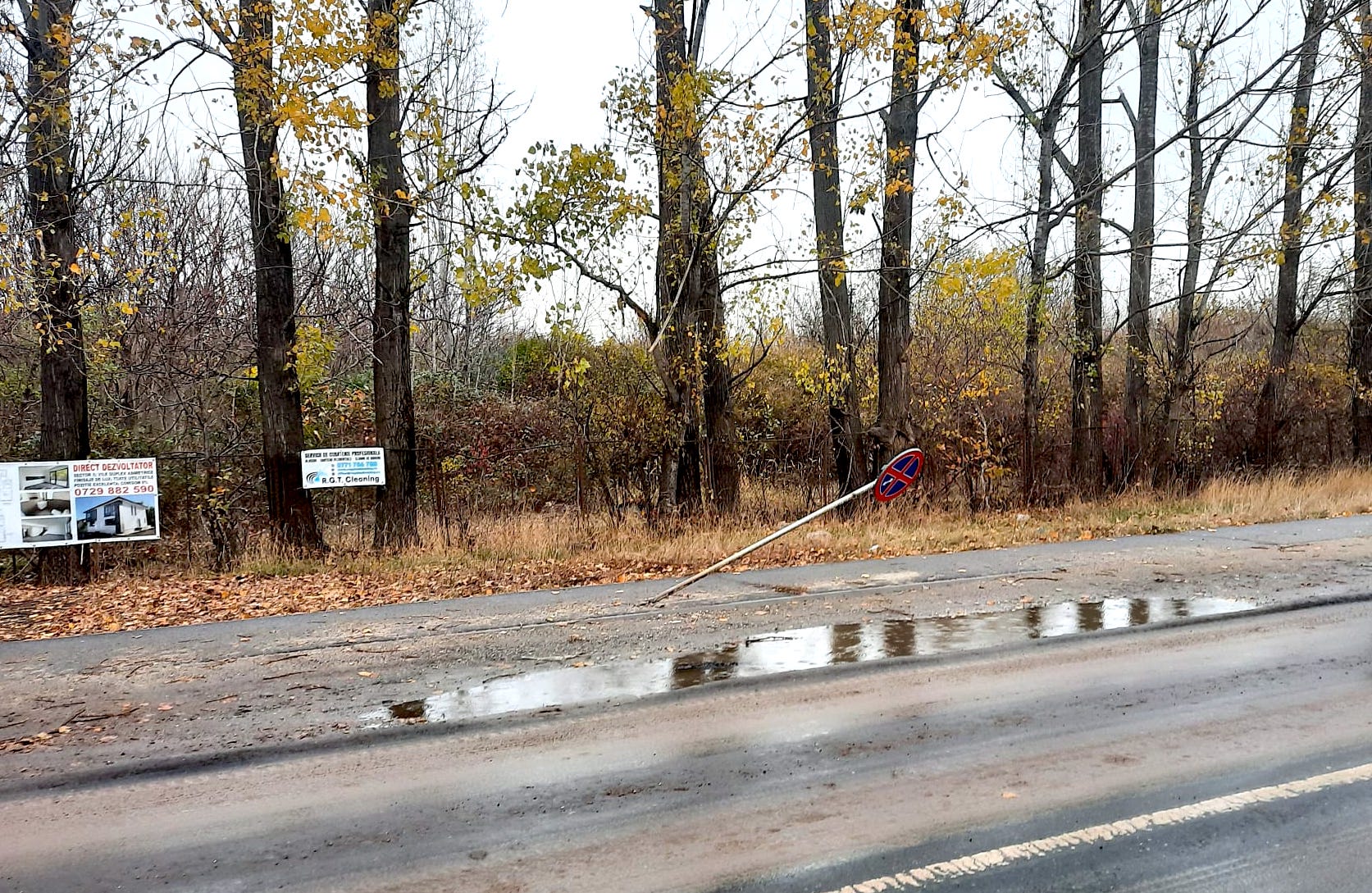 Pe undeva prin dreptul fostelor sere din Prelungirea Ghencea, un semn de circulație cu oprirea interzisă, lovit în urma cine știe cărui accident, a rămas îndoit, aproape paralel cu pământul, ca un steag abandonat al luptei pentru o condiții decente de viață.