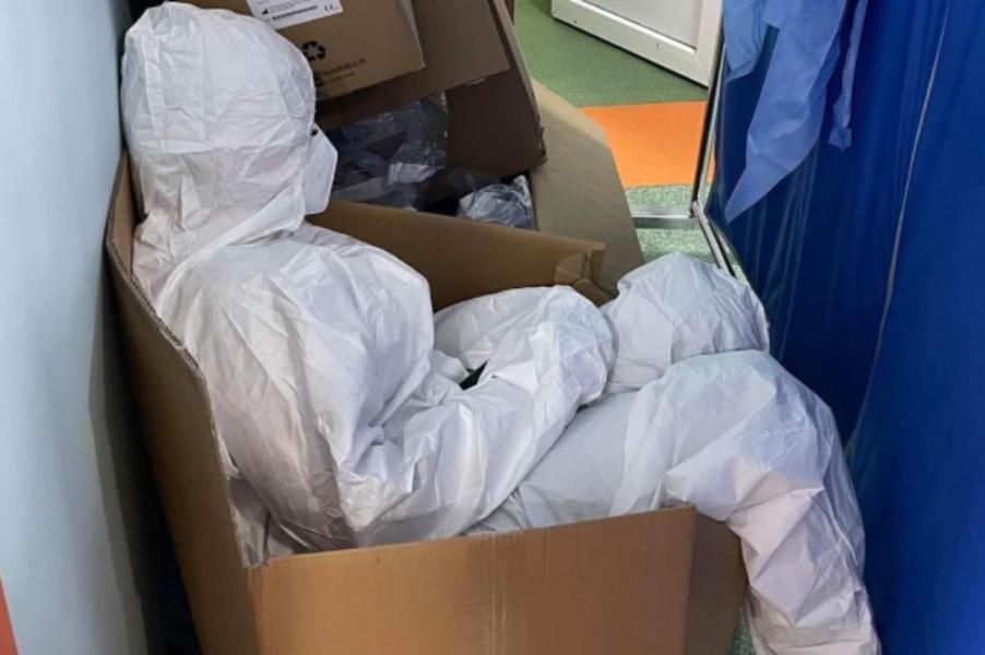 O asistentă de la Spitalul Sf. Pantelimon din București a fost fotografiată în acest în weekend în timp ce își trăgea sufletul folosindu-se de o cutie de carton pe post de scaun, arată o postare a paginii Ro Vaccinare.