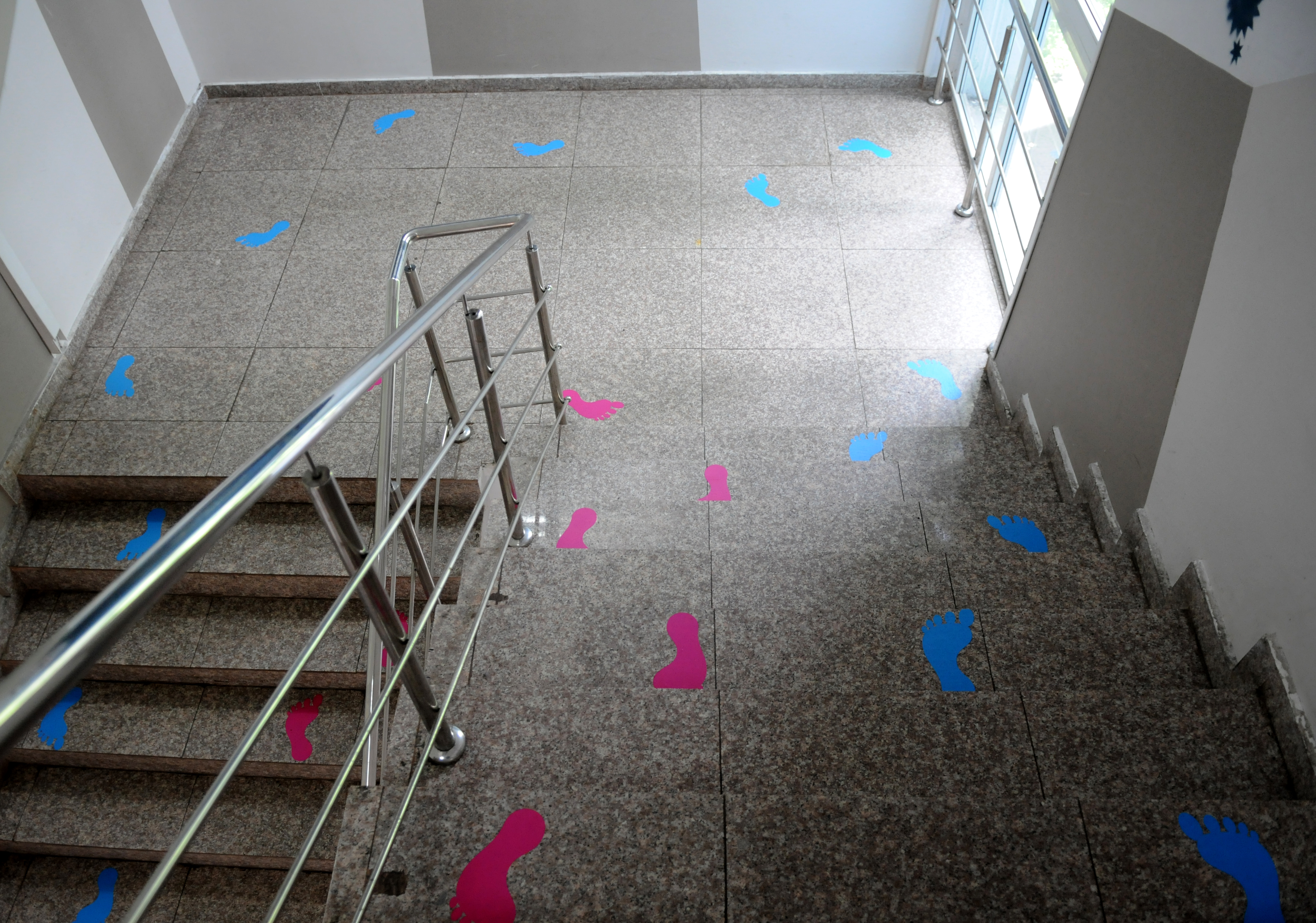 ⦁ Copii vor urma un traseu bine deliminat până la sălile de clasă și un alt traseu pentru ieșirea din unitatea de învățământ.