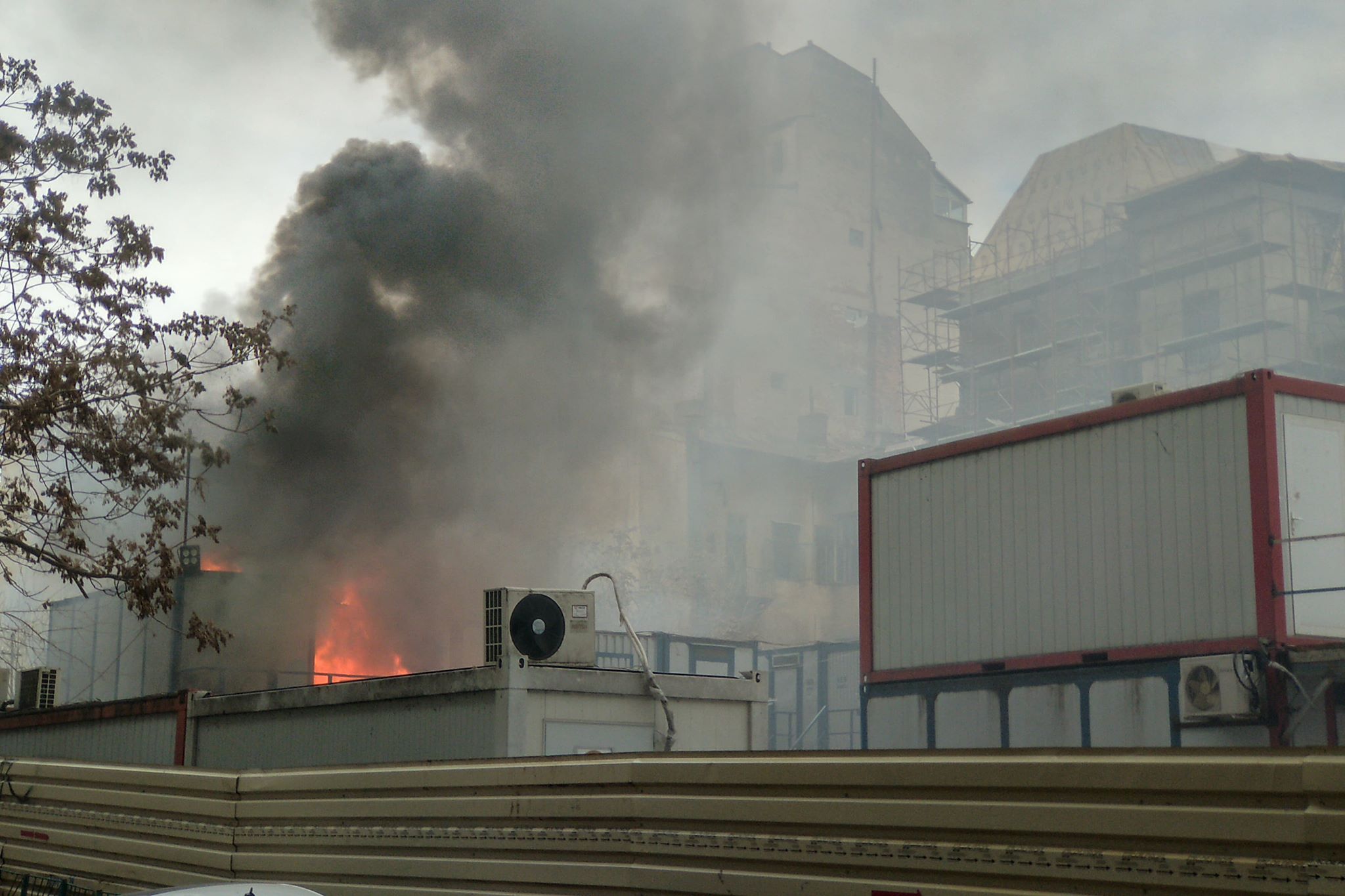 Incendiul are loc în organizarea de șantier de la fostul sediu al Primăriei Sector 5 de pe Bulevardul Regina Elisabeta.