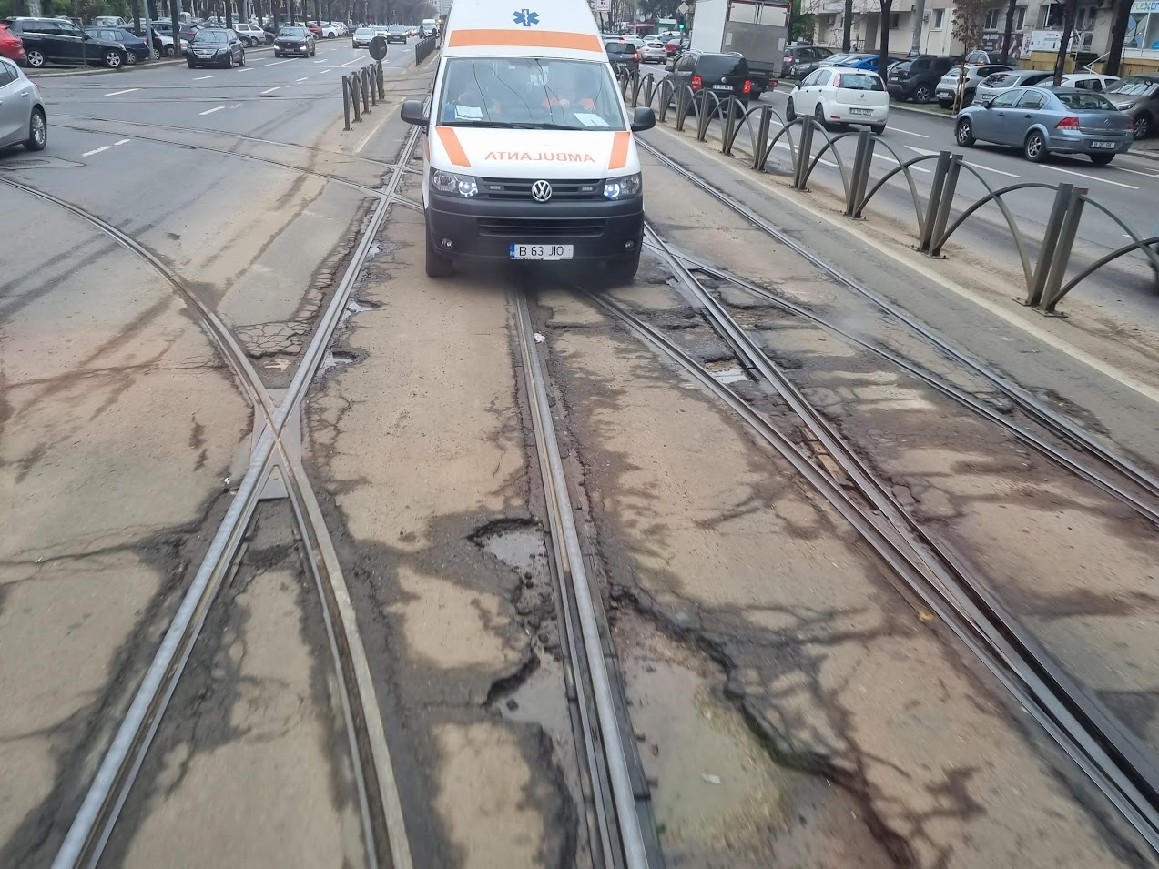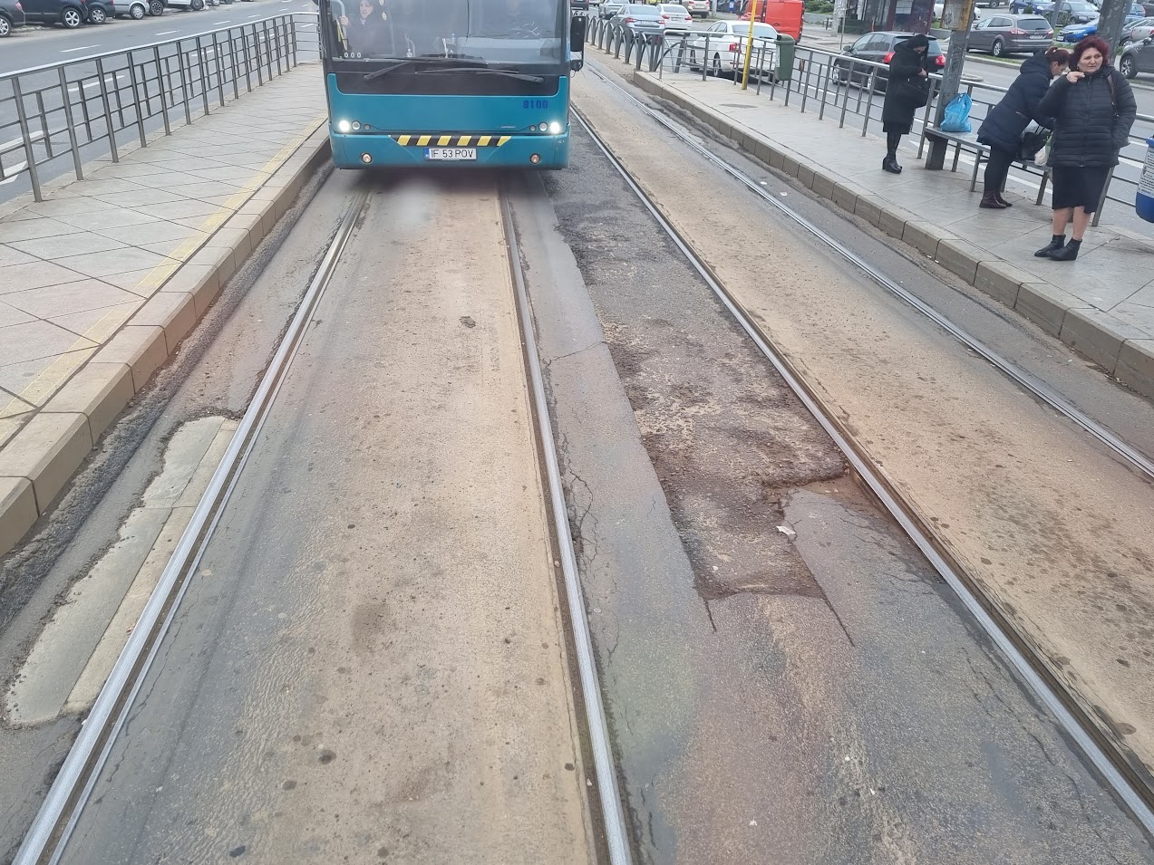 În ceea ce privește gropile dintre șine, am întrebat de ce nu au fost asfaltate când circulația tramvaiului a fost oprită pentru Pasajul de la Doamna Ghica. STB ne-a comunicat că o parte au fost deja asfaltate, iar restul vor fi în perioada următoare.