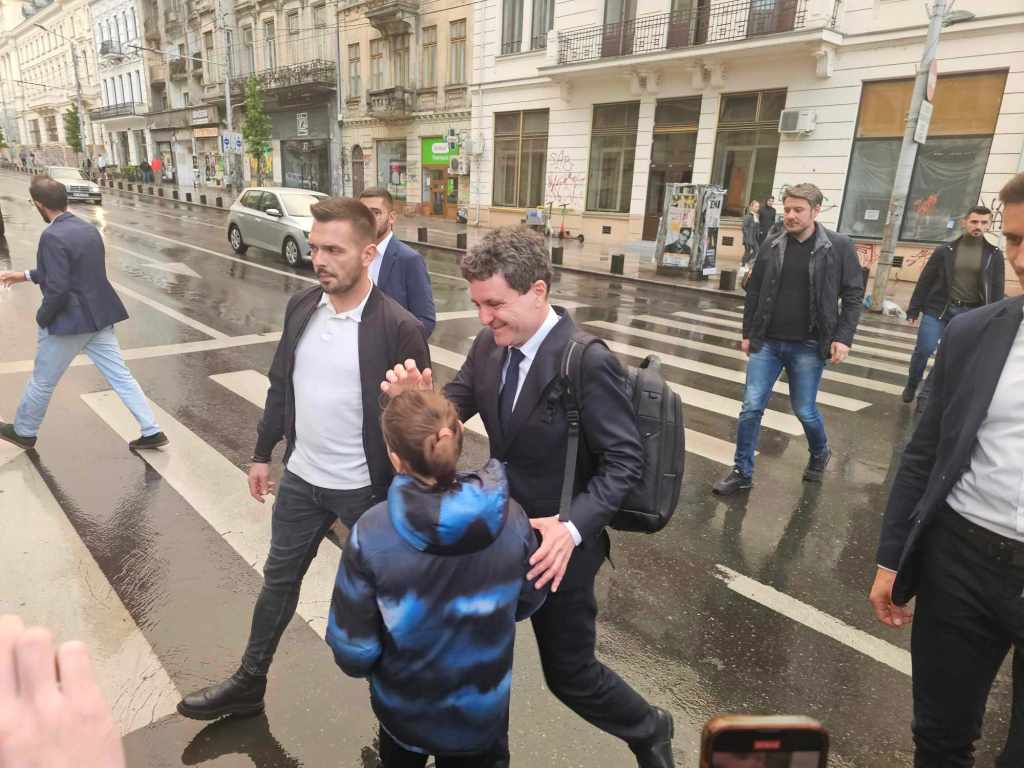 Mai multe persoane s-au oprit să facă poze cu candidatul independent, spun reporterii care sunt în prezent la fața locului. Dan a ajuns la sediu vesel.
