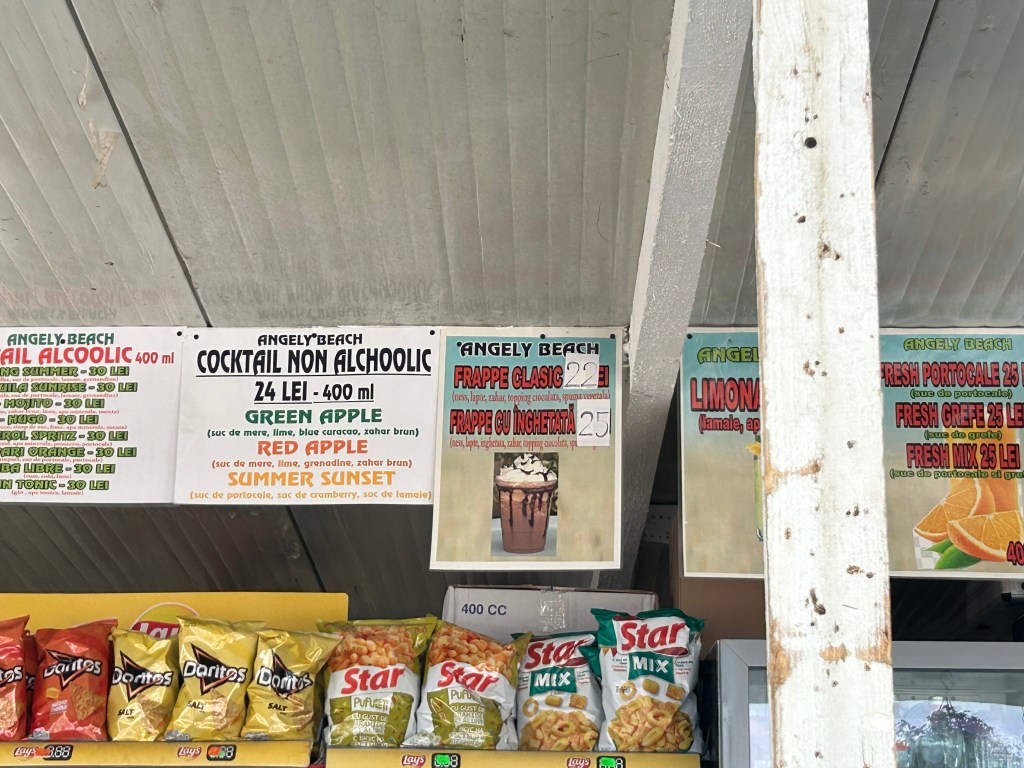 Barurile de pe plajă sunt înlocuite de gherete cu bere sau de terase. Pe plajă, o bere la draft costă 10 lei, iar un frappe cu înghețată, 20 de lei.