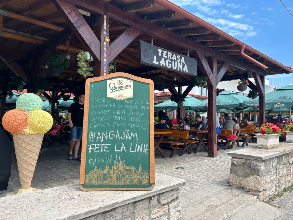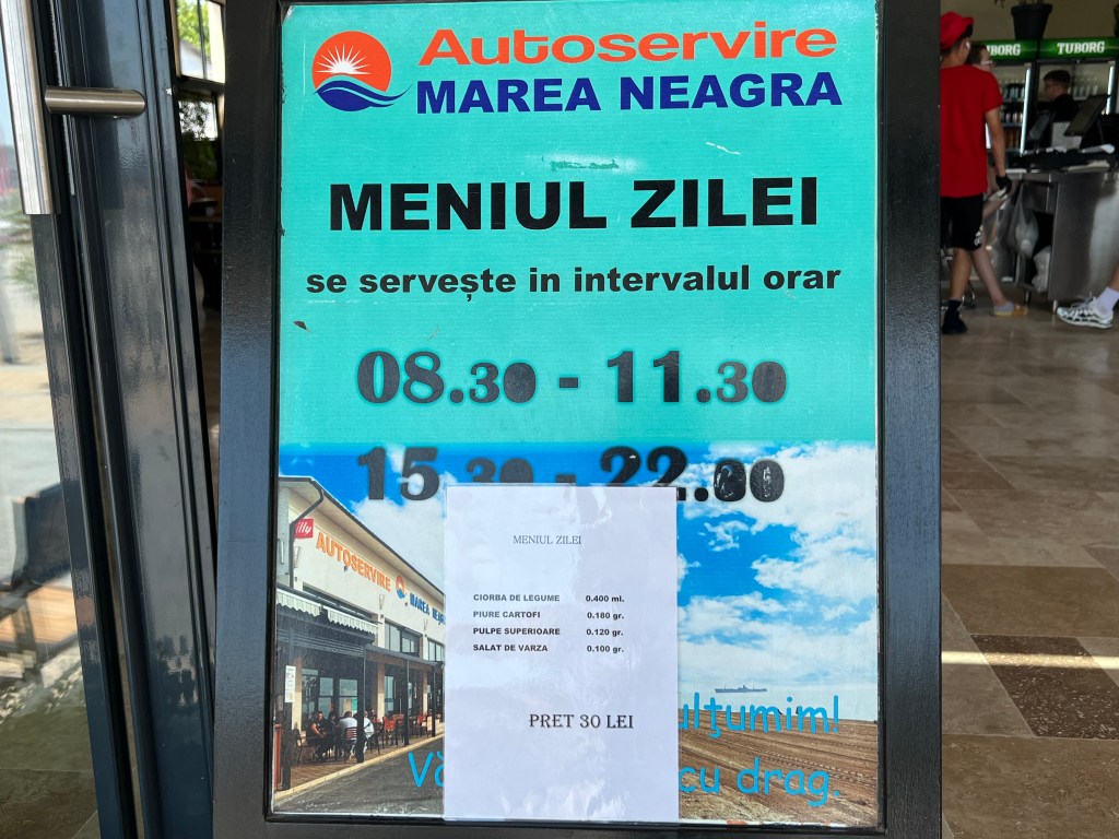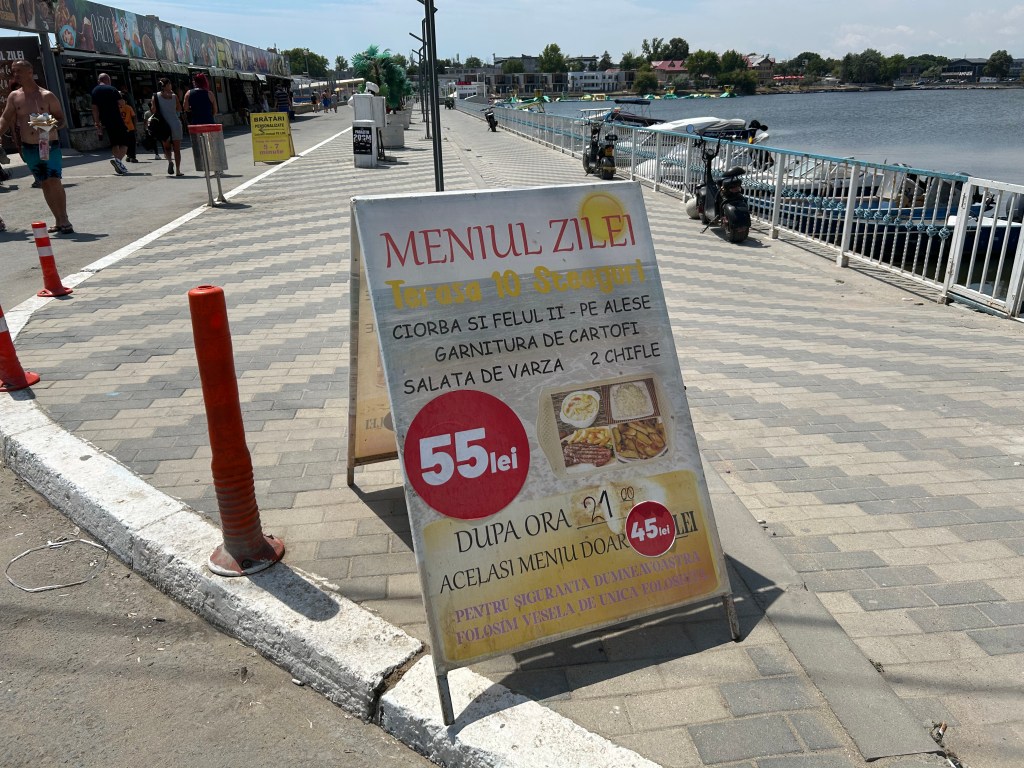 Pentru o masă mai sățioasă, în apropierea plajei se găsesc și restaurante sau autoserviri. La o terasă, meniul zilei – ciorbă, felul doi și salată de varză – costă 55 de lei, iar la autoservire, 30 de lei.
