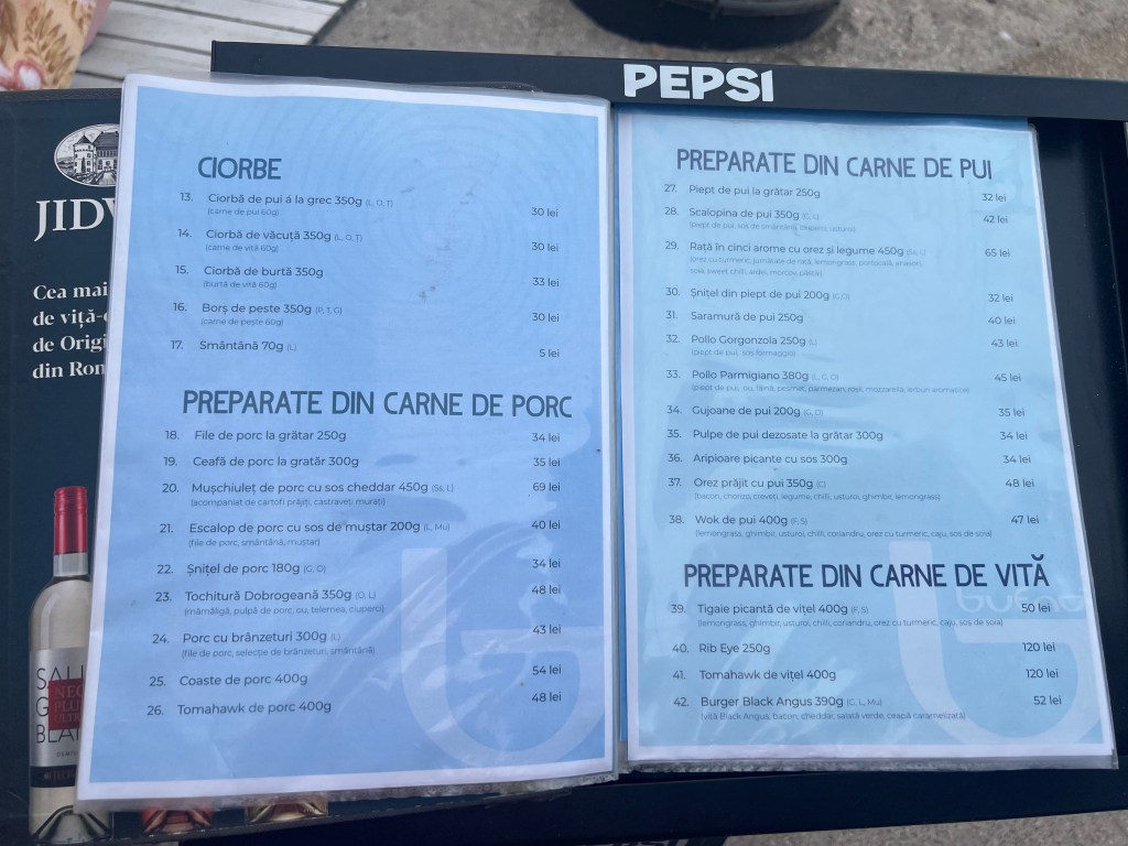 La capitolul mâncare, o porție de 200 de grame de hamsii pe plită costă 38 de lei, iar o porție de 200 de grame de midii ajunge la 50 de lei, la o terasă chiar în fața plajei. Pentru deserturi, un turist poate scoate din buzunar 25 de lei pentru o clătită și 30 de lei pentru o porție de gogoși cu două toppinguri. Un porumb fiert sau copt costă 12 lei.